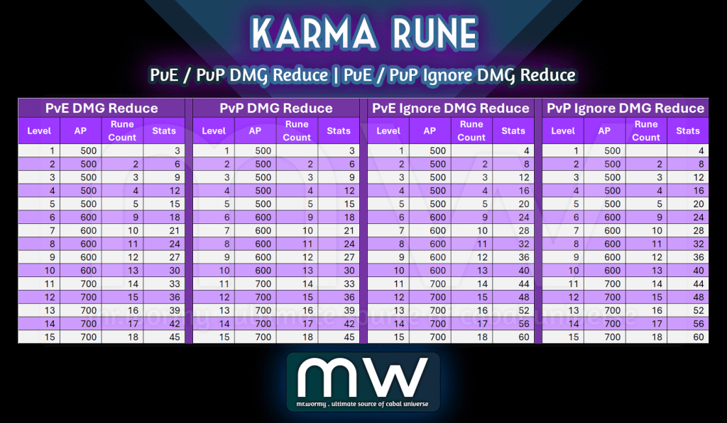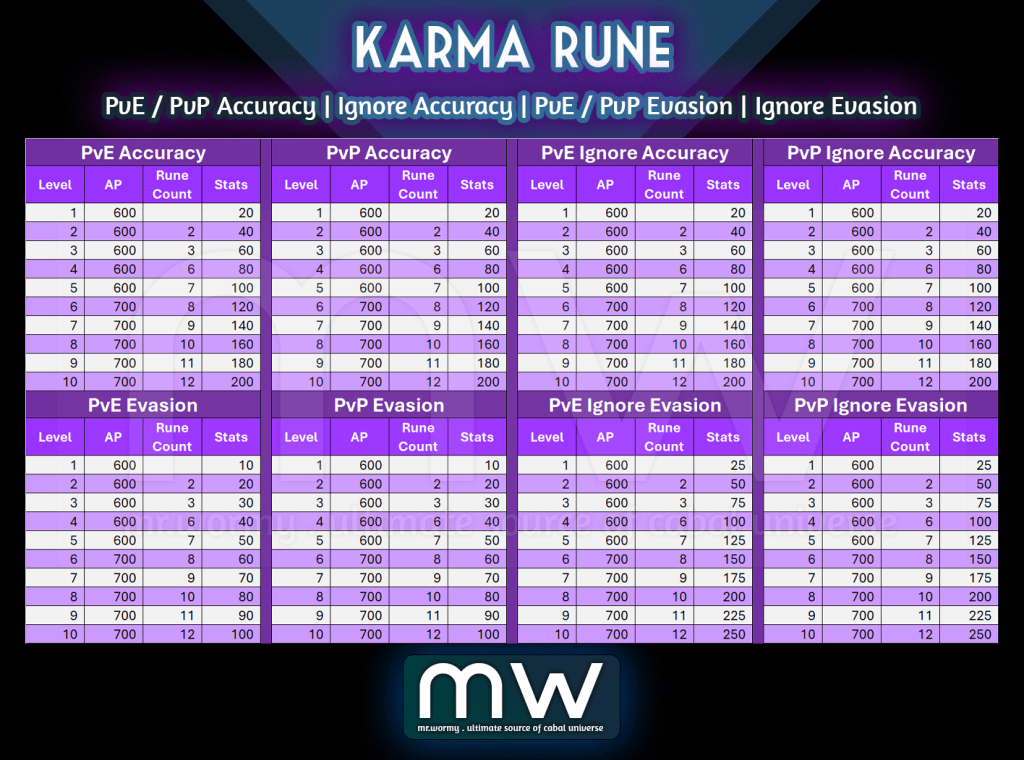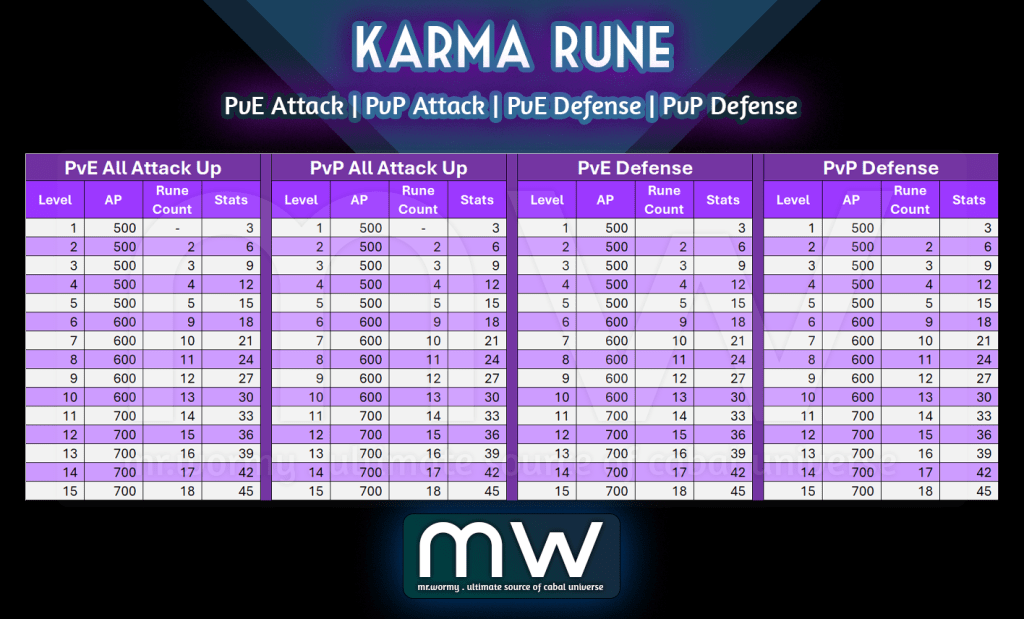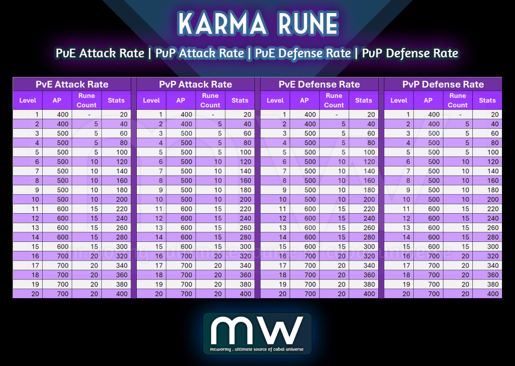 - Add 04 new types of Karma Runes (PvP/PvE Attack Rate & PvP/PvE Defense Rate).