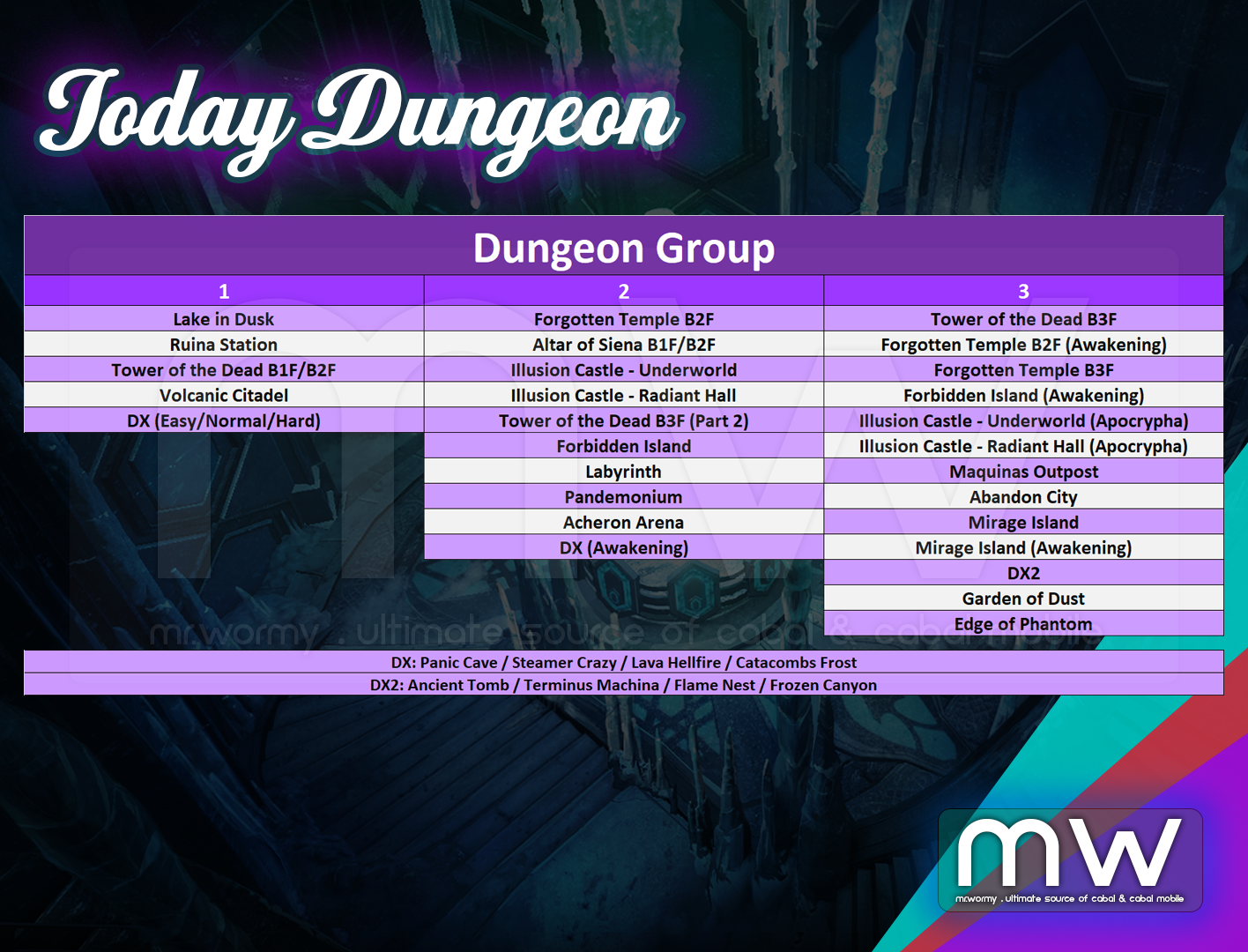 - “Today’s Dungeon” is a new feature added in Episode 32, everyday a new set of dungeons will be selected from 3 different groups as the featured dungeons.