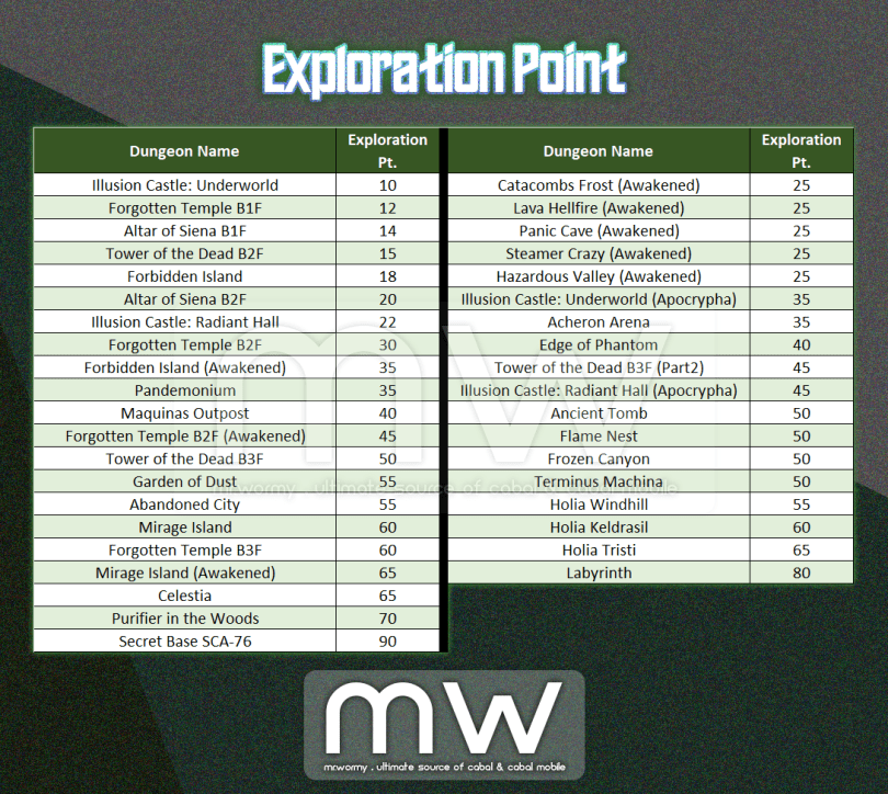 - By clearing eligible dungeons, player can earn “Exploration Point”.