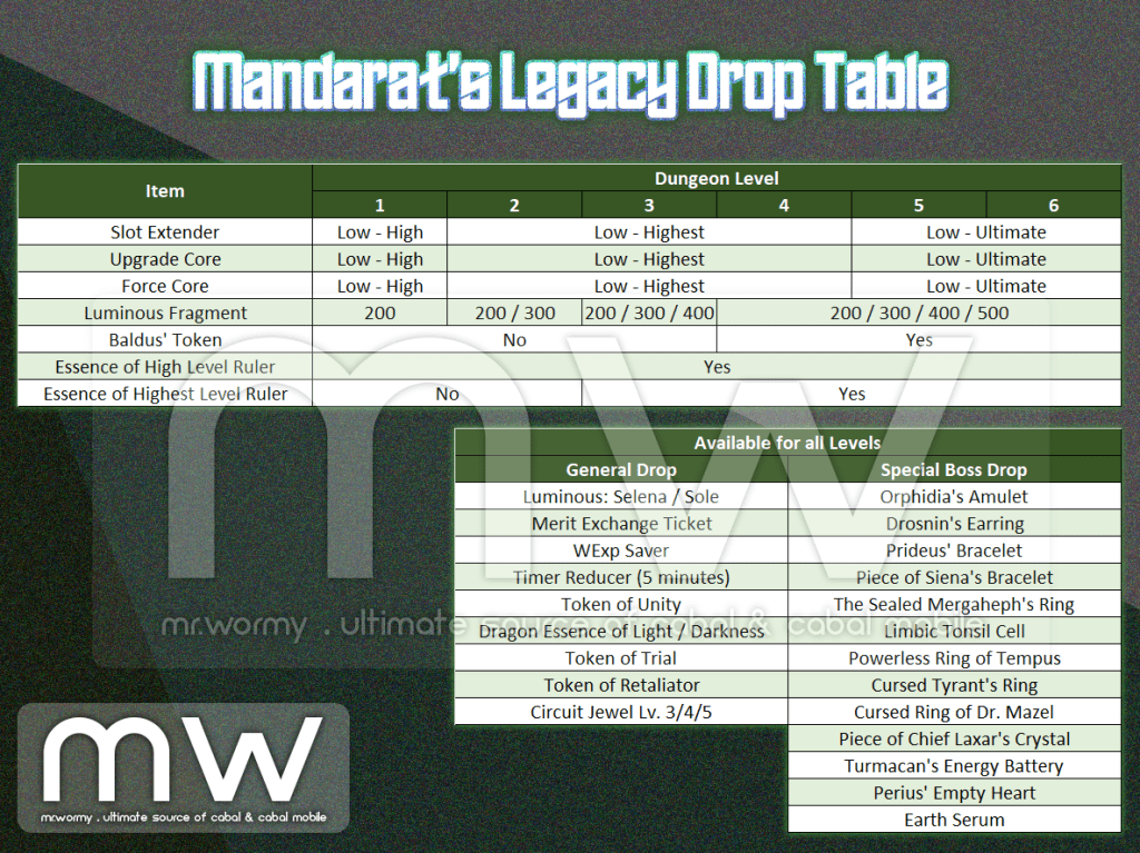 - Areas of the “Mandarat’s Legacy” dungeon: