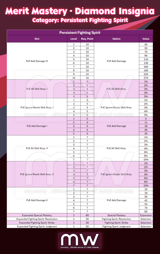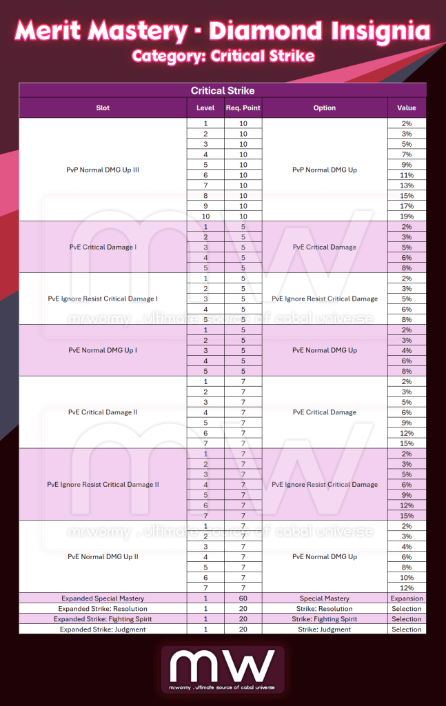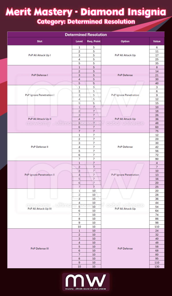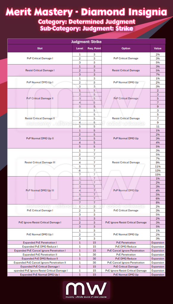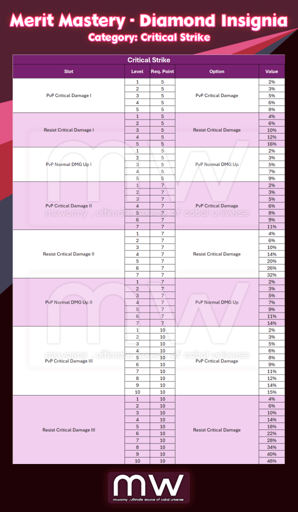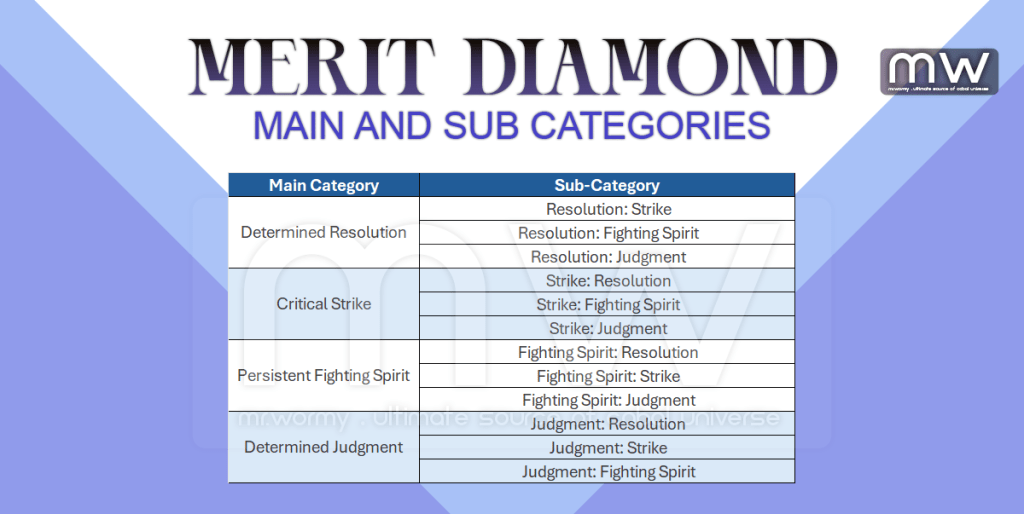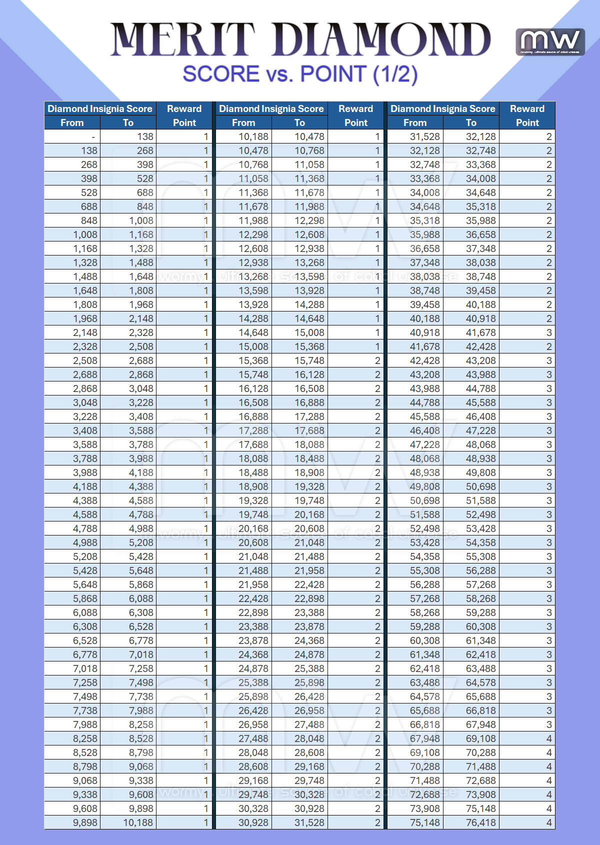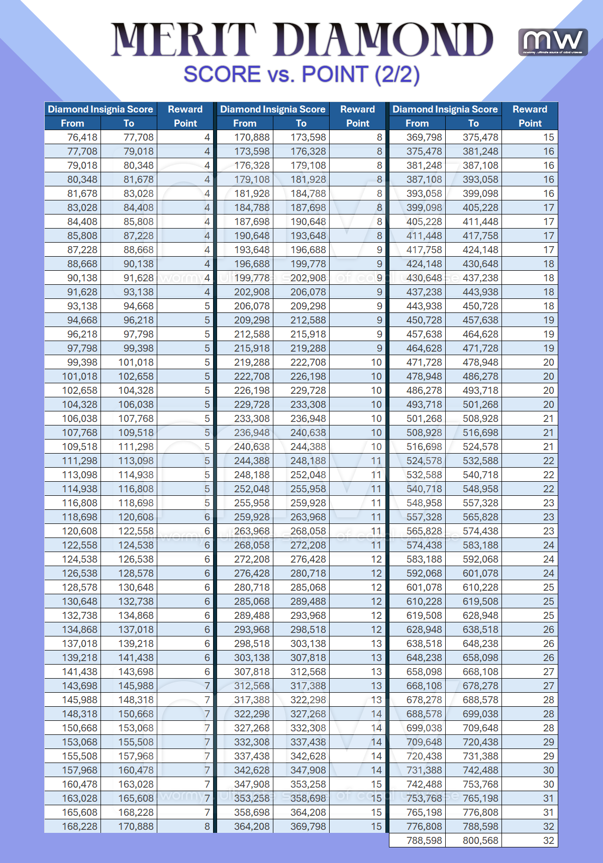 - Merit now is separated into Gold Insignia (Merit 1), Platinum Insignia (Merit 2) and Diamond Insignia (Merit 3).