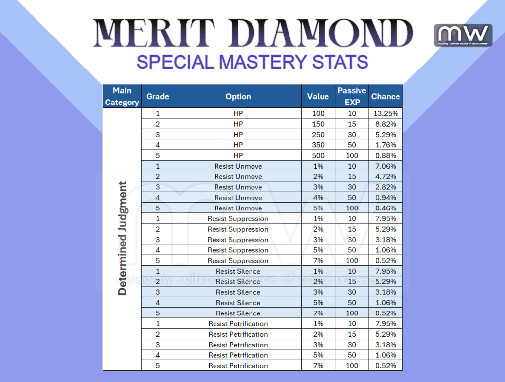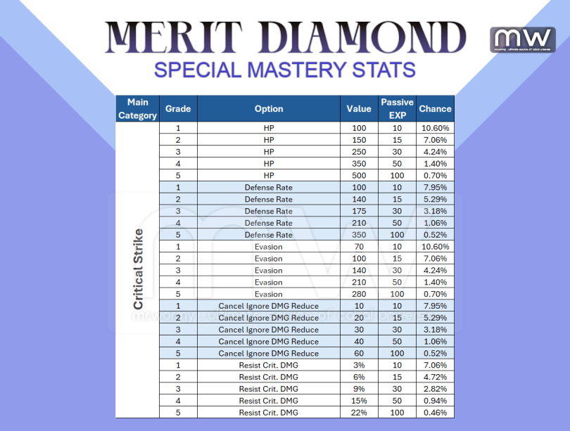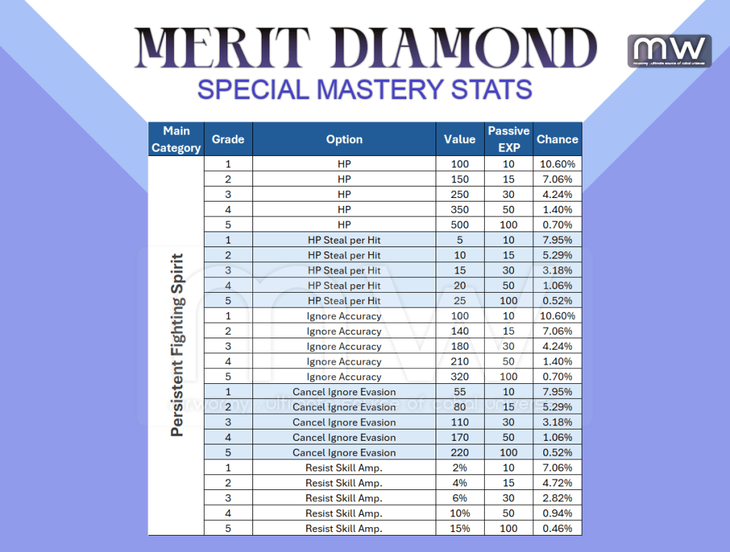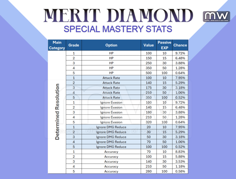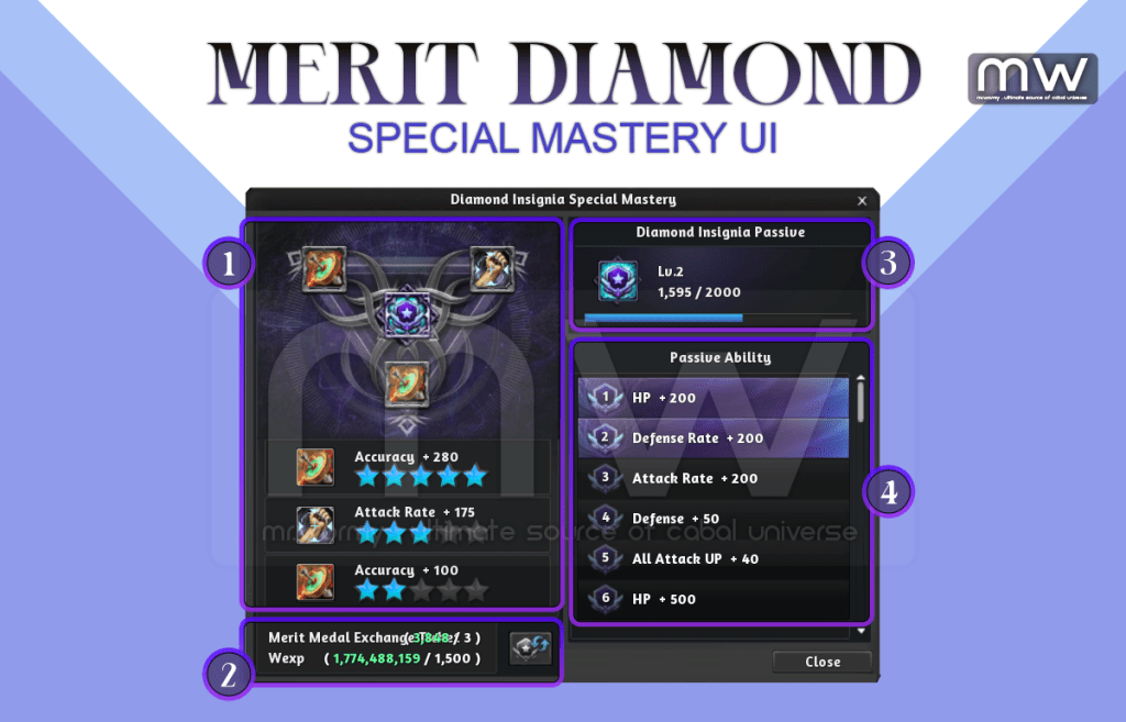 - By granting the options for Special Mastery of Diamond Insignia, Passive EXP will be accumulatively stored.