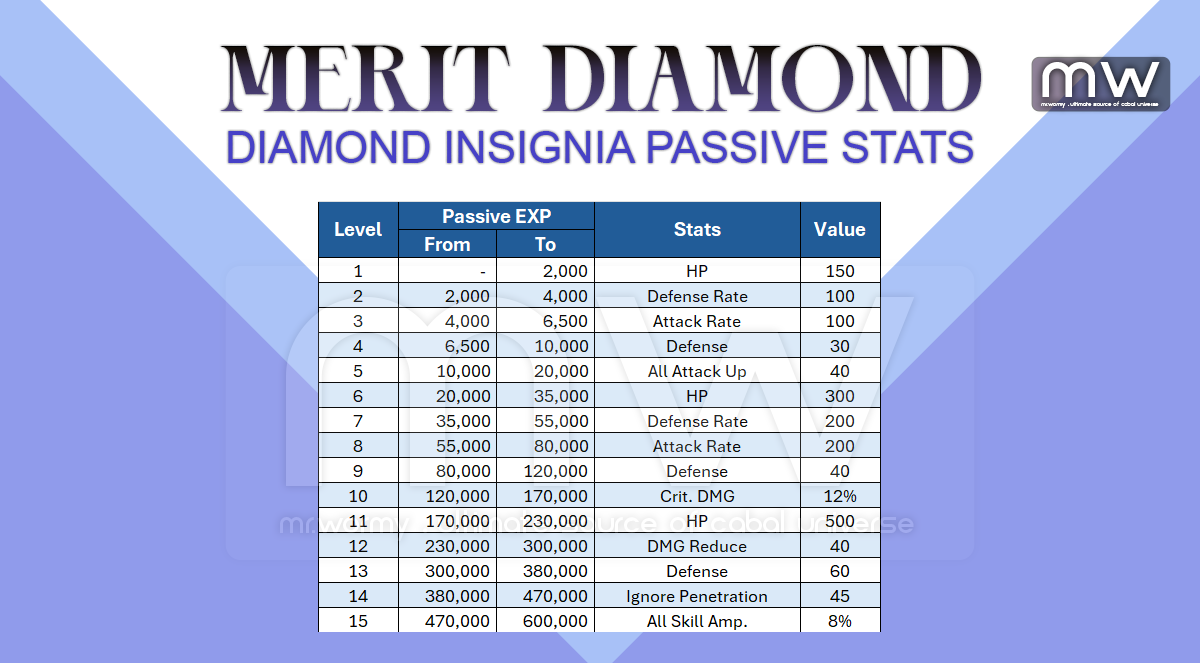 - By growing the Passive EXP, player can obtain the Diamond Insignia Passive Level.