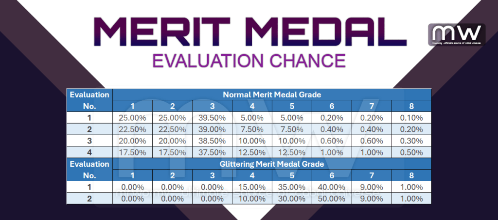- National Merit Medal (Merit Medal of Luminosity or Merit Medal of Storm) can be converted into Glittering version using Merit Medal Evaluation Order.
