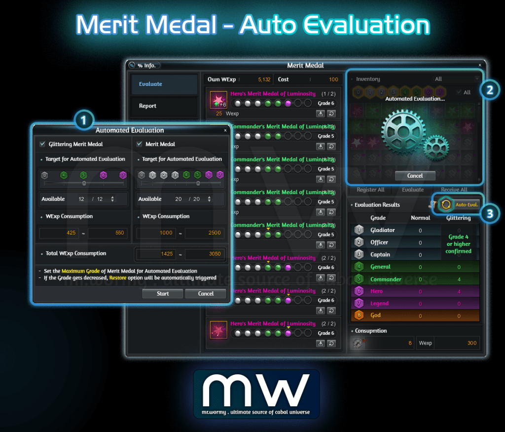 - Cancel: For using “Merit Medal evaluation cancel order”