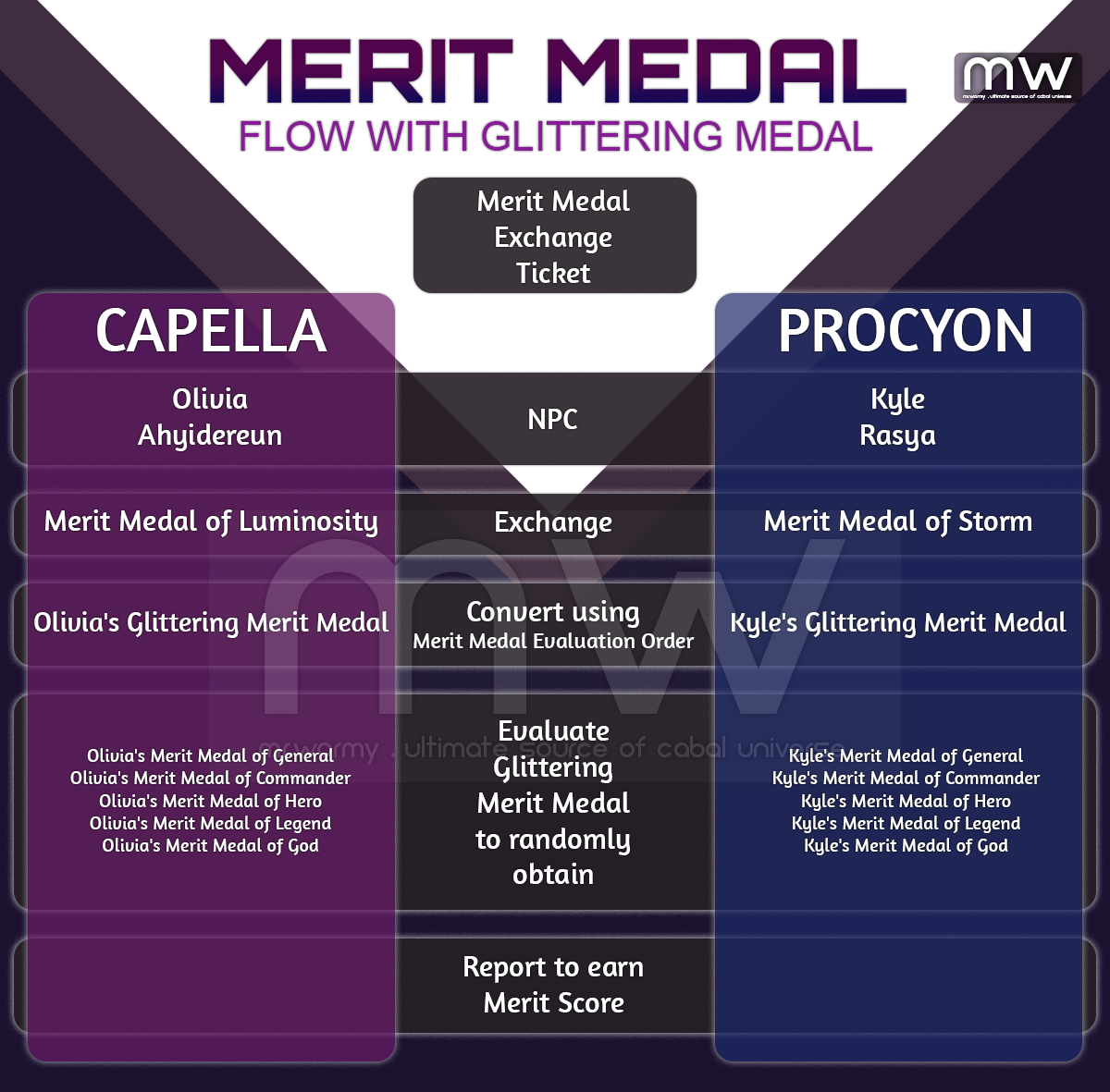 - If you are Capella, you can exchange 01x Merit Medal Exchange Ticket for 01x Merit Medal of Luminosity.