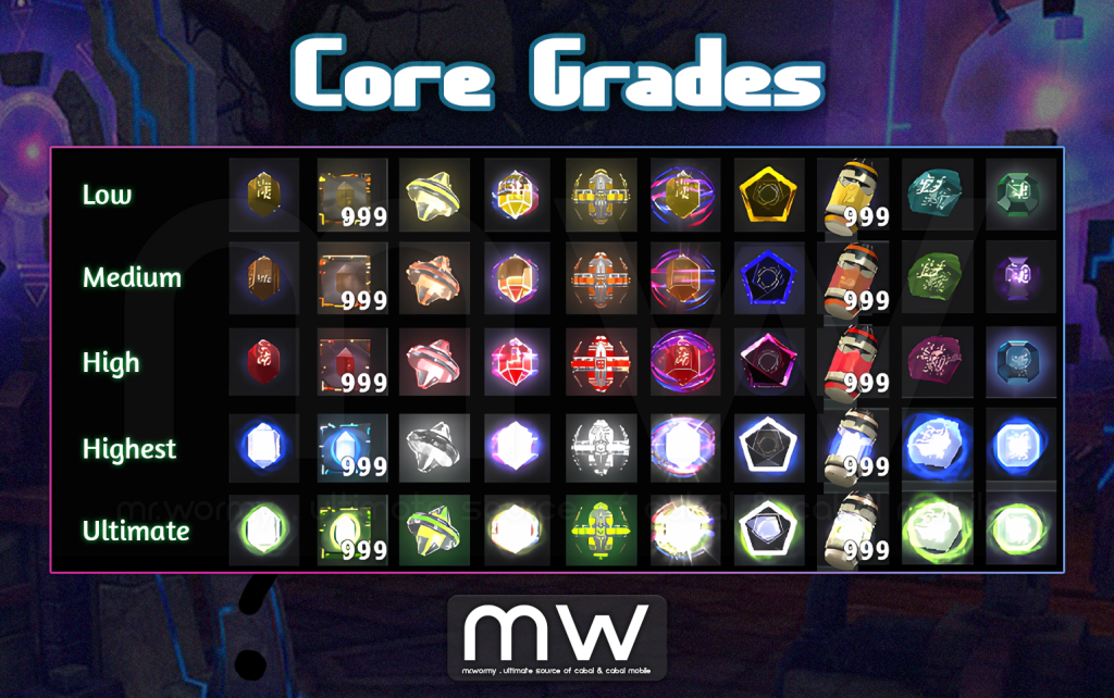 - Depends on type of Core (Normal / Enhanced / Superior / Perfect), different results can be achieved with different chances.