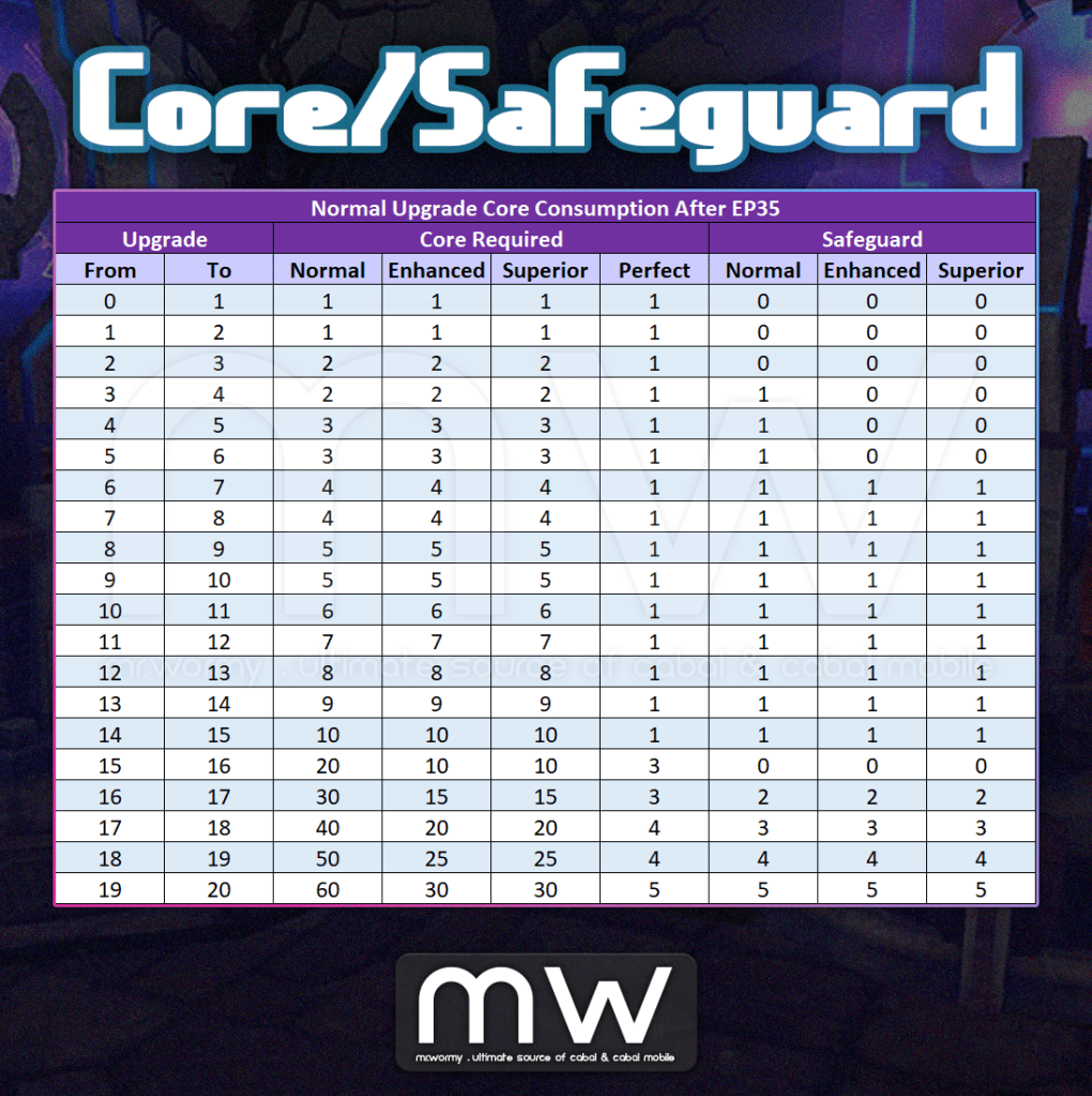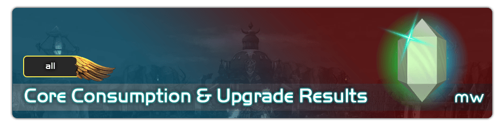 - By Episode 35, there are some changes affected the Normal Upgrade which are for: Success Rate, Available Results, Required Amount of Core, refer to the detailed changes in “Core Consumption & Upgrade Results” in this page.