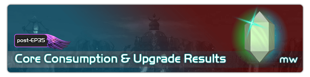 - post-EP35: Success Rate, Available Upgrade Results, Core & Safeguard Consumption… after Episode 35.
