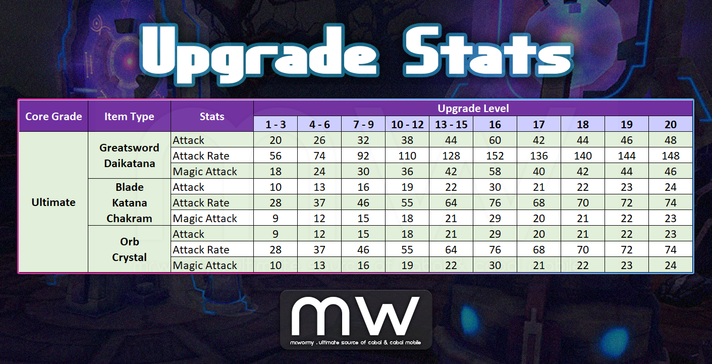 - By Episode 35, there are some changes affected the Normal Upgrade which are for: Success Rate, Available Results, Required Amount of Core, refer to the detailed changes in “Core Consumption & Upgrade Results” in this page.