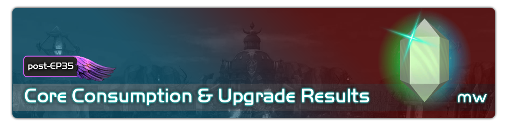 - post-EP35: Success Rate, Available Upgrade Results, Core & Safeguard Consumption… after Episode 35.