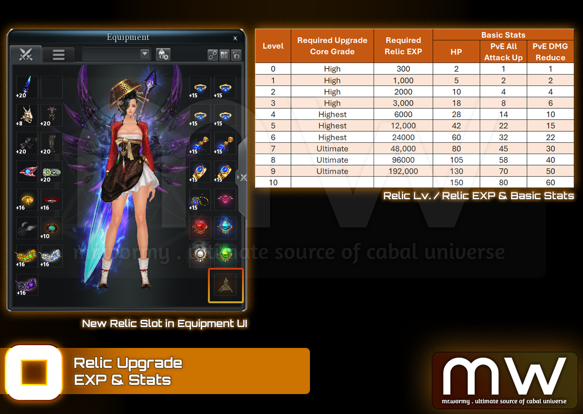 - Relic EXP & Basic Stats of Relic: