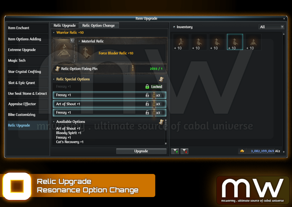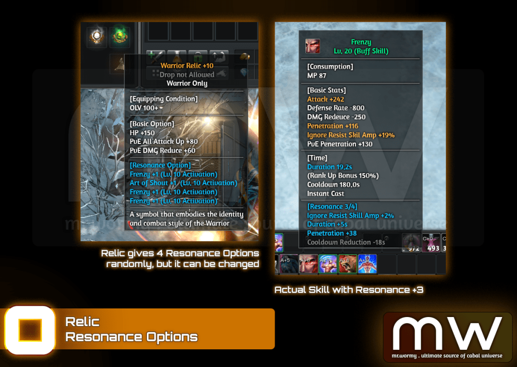 - A Relic once reached Lv. 10 can have its Resonance Option to be changed.