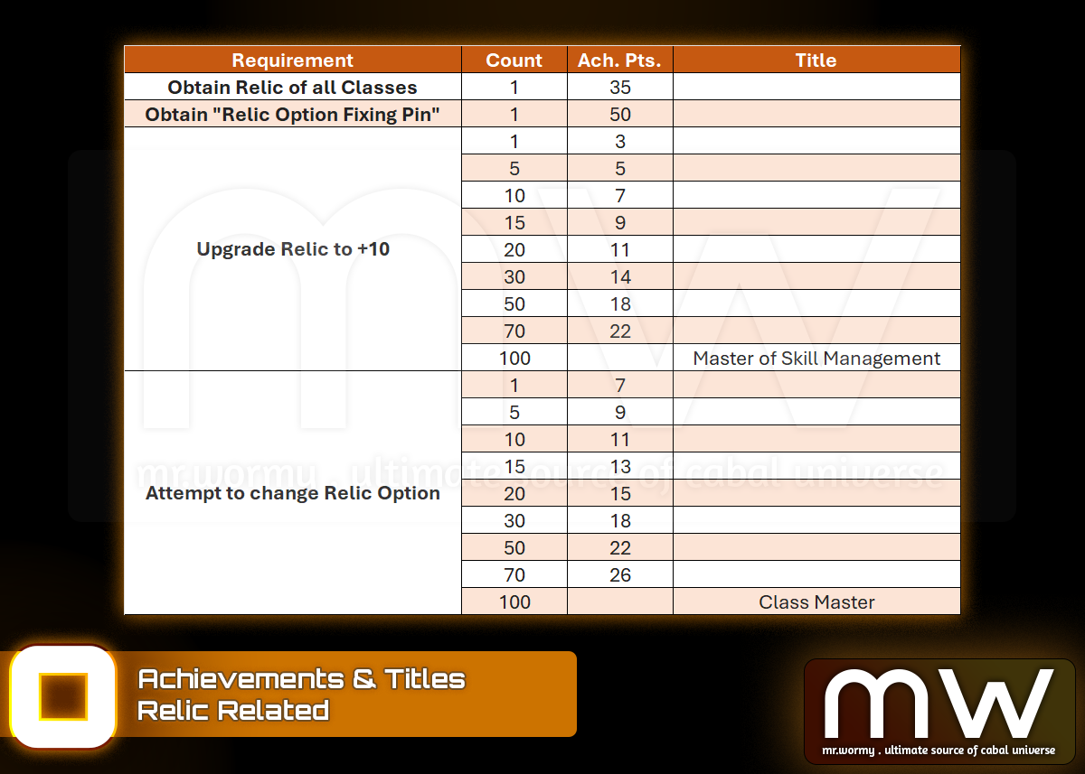 - Specific amount of Relic Option Fixing Pin