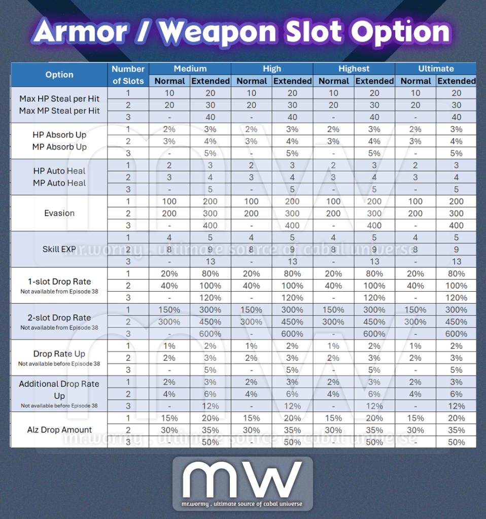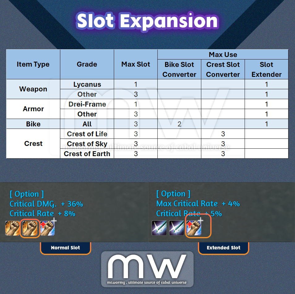 - Depends on target item type, by extending the slot, Option Slot value could be increased.