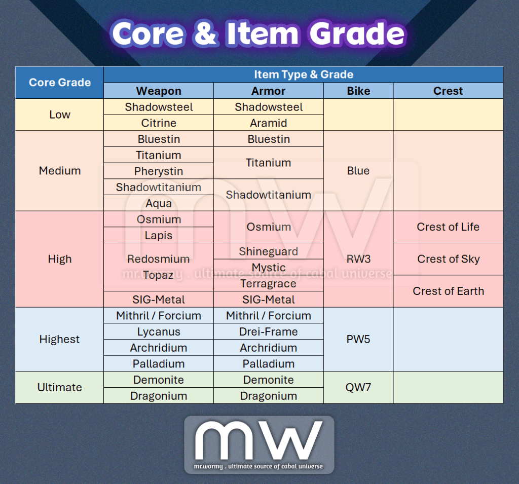 - E.g. SIG-Metal items need “High” grade, Archridium items need “Highest”…