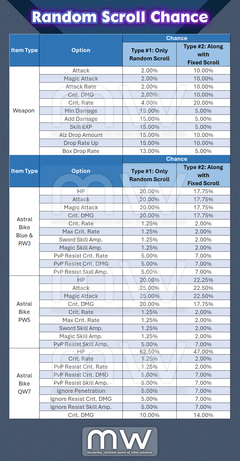 - For both Armor / Weapon and Bike, we can use “Option Scroll – Random” in order to get a random stats from the stats pool. However, the way of using the Option Scroll – Random is not just simple like that. Available scenarios are below: