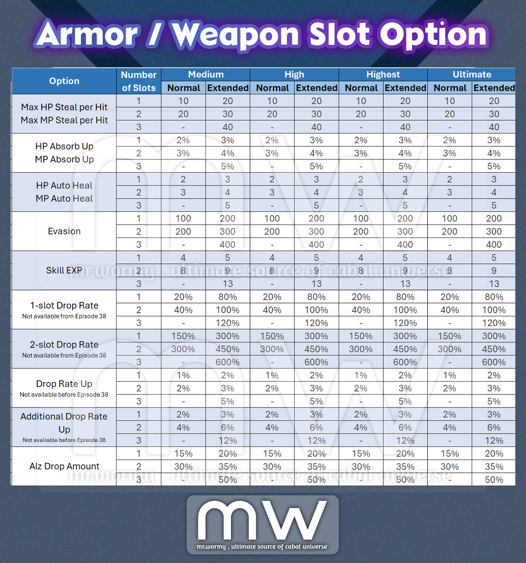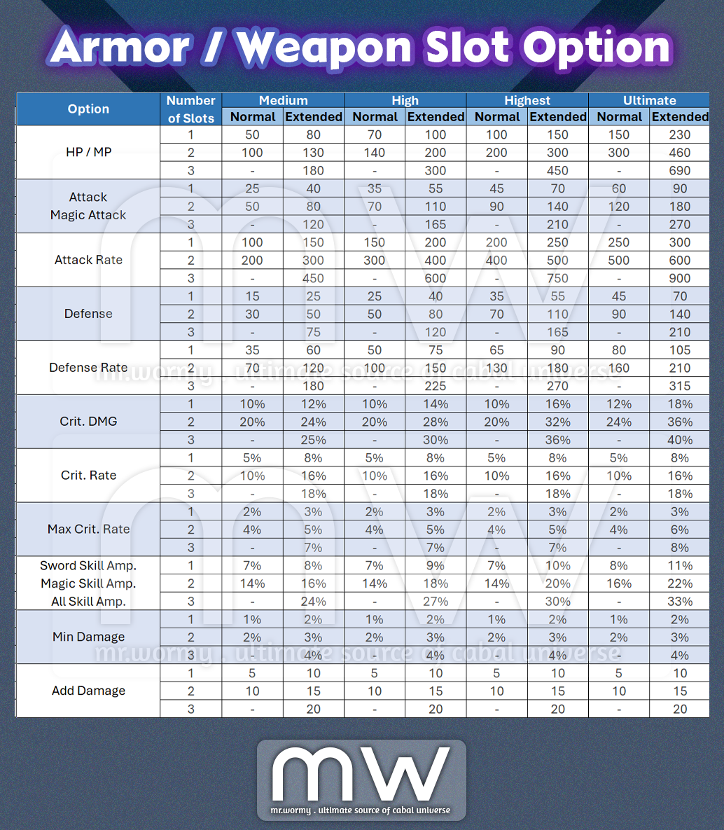 - Depends on target item type, by extending the slot, Option Slot value could be increased.