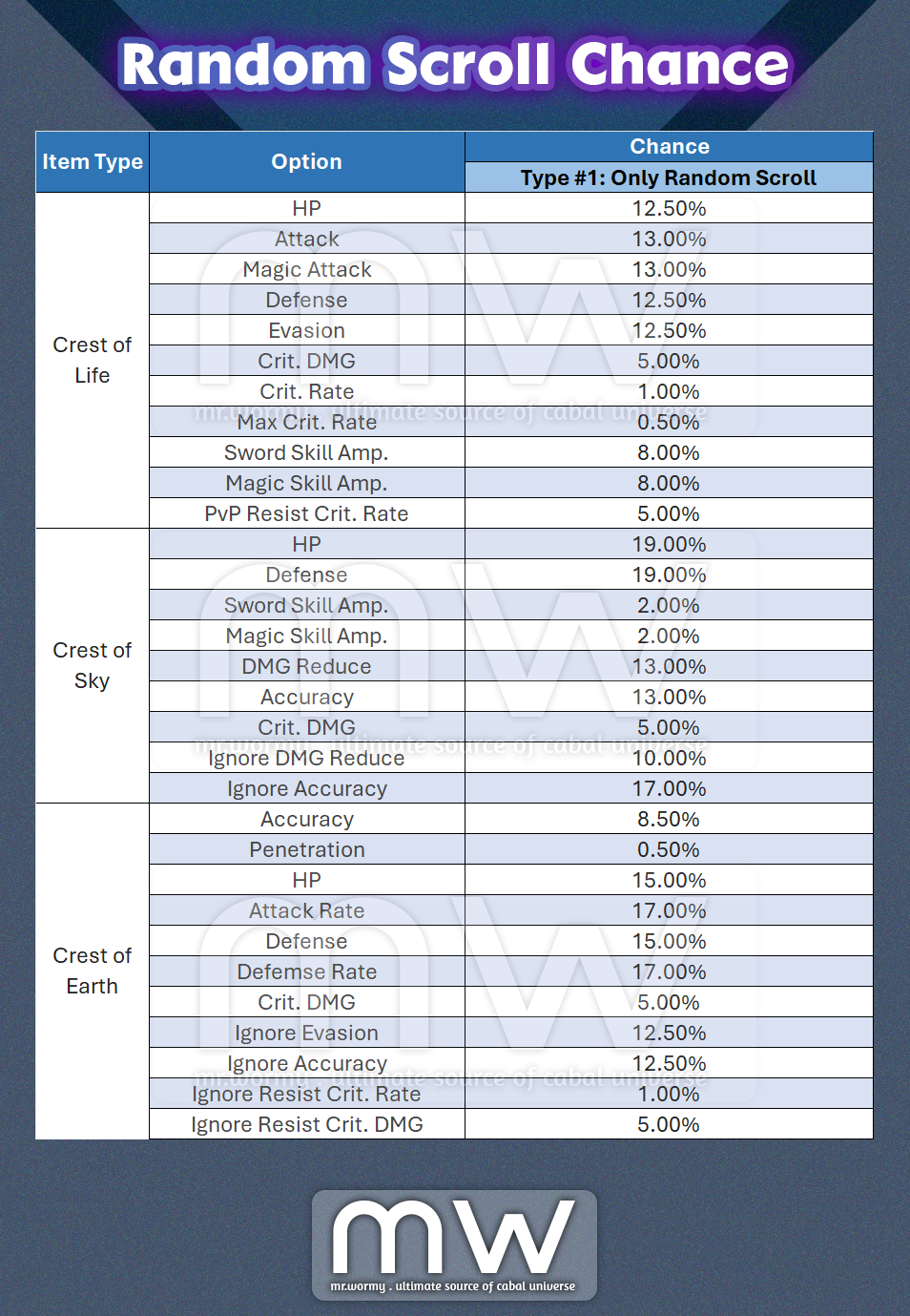 - Chance to get options while using Random Scroll on Crest of Life / Sky / Earth