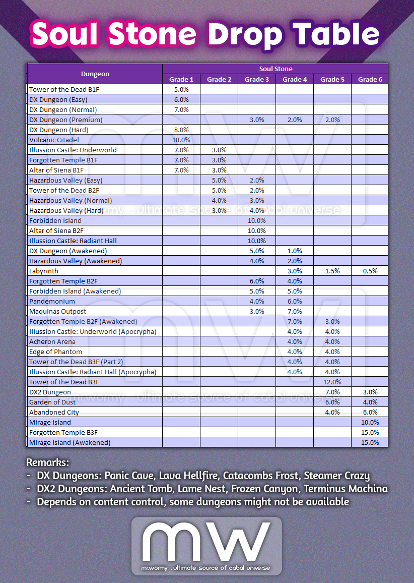 - As mentioned, Sealed Soul Stone could be obtained from dungeons, detailed list as below (new dungeons could be added into the list in the future):