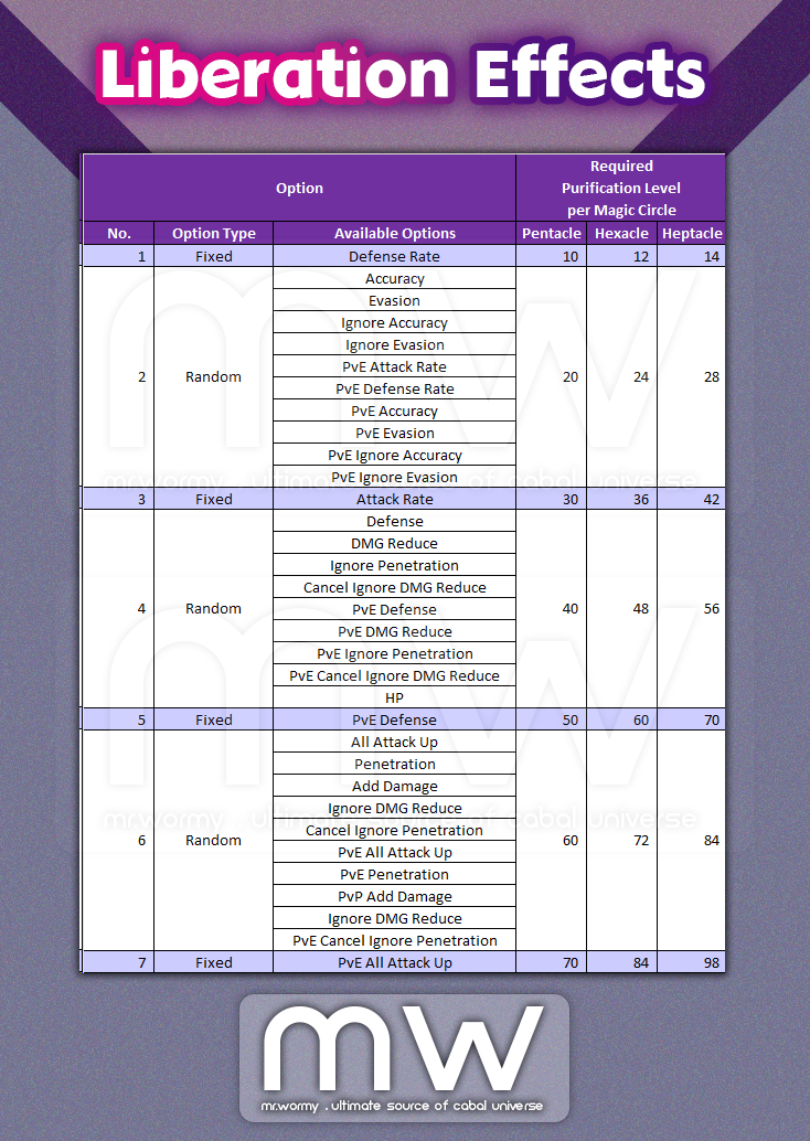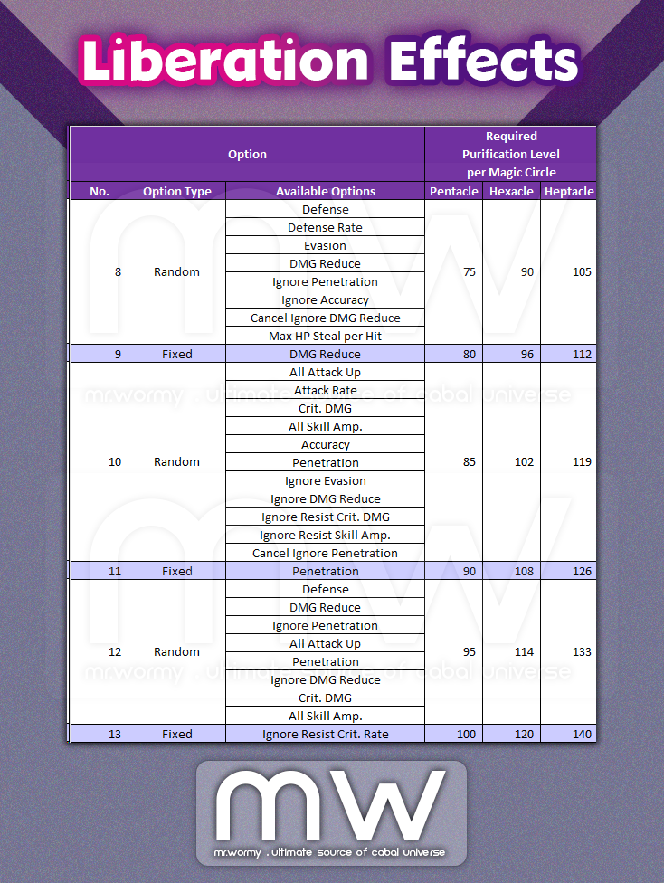 - Different amount Purification Level are required to activate the Liberation Effect at [5], refer to the table below.