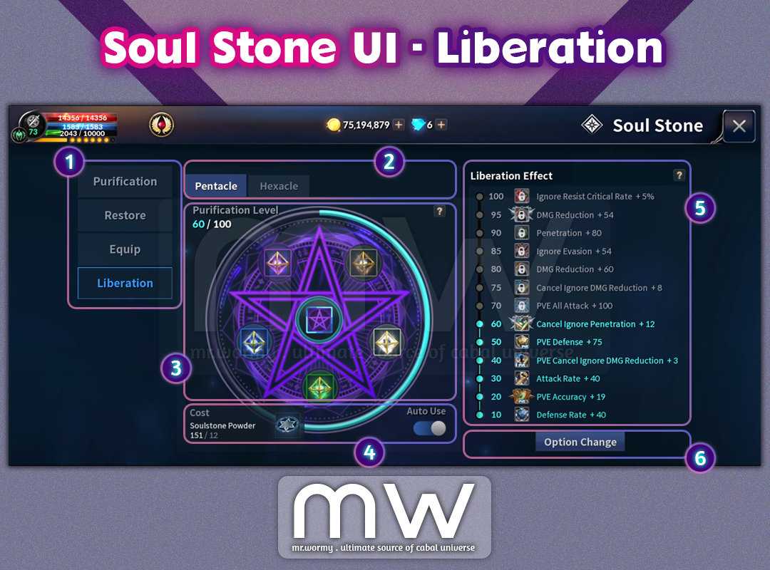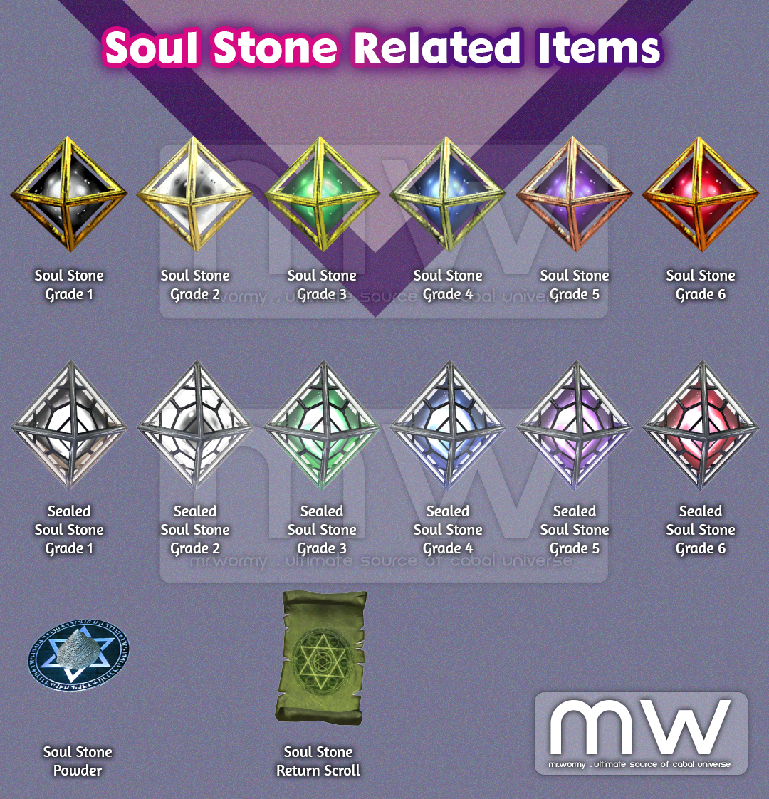 Soul Stone is a Cabal Mobile exclusive content, player can upgrade the Soul Stone (called as Purification process) and equip it to gain stats, based on the total level of Soul Stone upgrade, additional stats can be obtained (called as Liberation Buff).